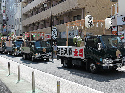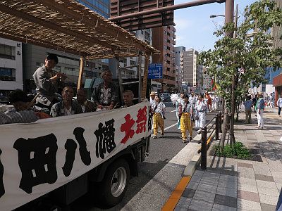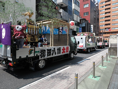 例年は本社神輿を載せたトラックを中心とする車列での渡御が行われる。