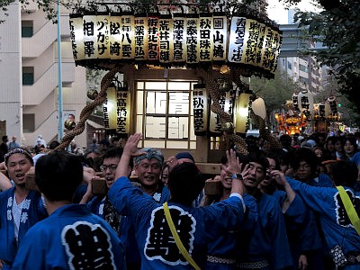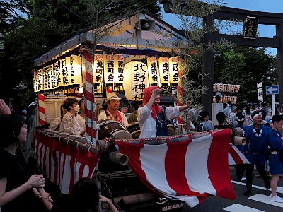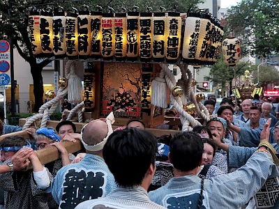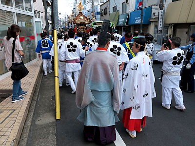 当社の例大祭は9月中旬。隔年で宮神輿が渡御し、他年においては町神輿の連合渡御が行われる。