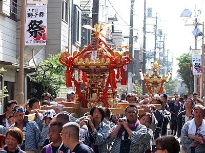 江古田氷川神社の例大祭は10月第一土日曜日で、日曜日には三匹獅子舞が練り行列の後に境内で披露される。東京都には三匹獅子舞が現在も約80ケ所に伝承されているが、その大半は市町村部であり、都区部には数少ない。