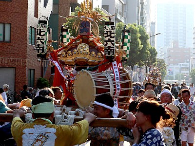 例大祭は8月の第1土日曜日。隔年の本祭では、磐井神社の氏子六ヶ町の町神輿と根岸神社の宮神輿が連合渡御を行う。
