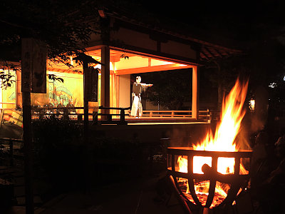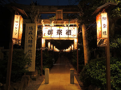 鳩森八幡神社は国立能楽堂のお膝元にあり、そのため例大祭では毎年、夜に薪能が奉納される。