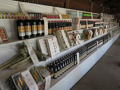 全国から奉納された銘酒や銘菓、特産物も回廊に展示される。