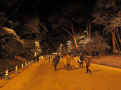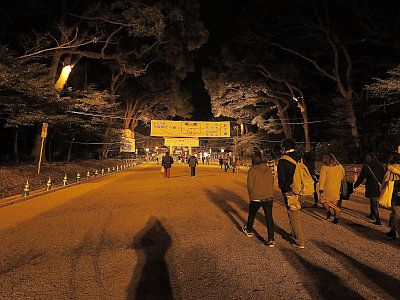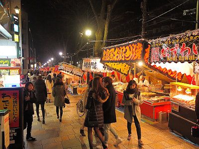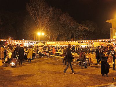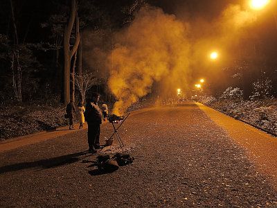 北参道沿いには篝火が幾つも焚かれていた。また、鳥居を出た境外には露店も若干出ていた。