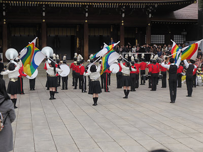 幼稚園児から小・中・高・大学生、社会人などの鼓笛隊やカラーガード、ブラスバンド、チアリーディングが、神宮外苑から青山通りと表参道を経て、明治神宮の社殿前へと進む。