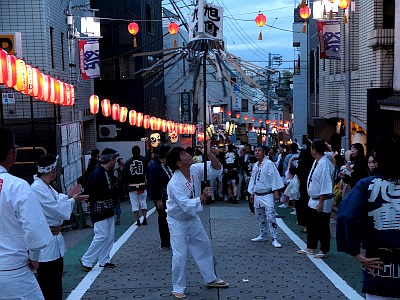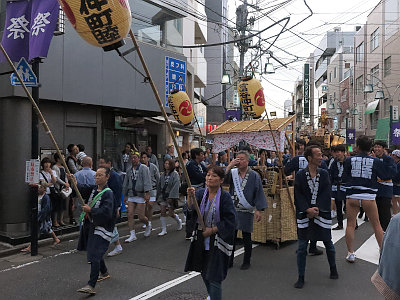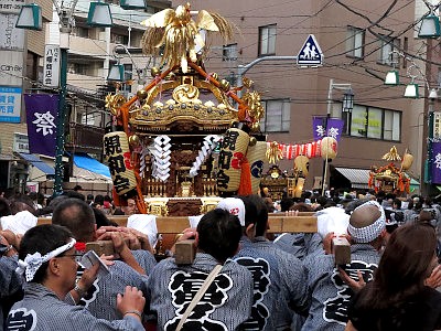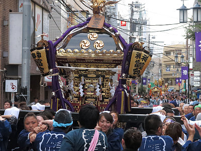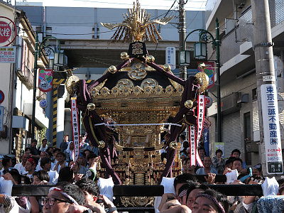 代々木上原駅周辺で、三睦の町神輿が連合渡御する。