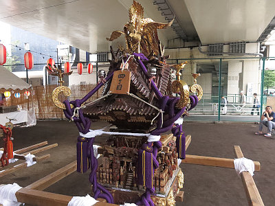 上原一丁目敬神会の神輿は、屋根が蕨手で構成された異形の神輿。