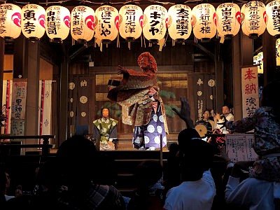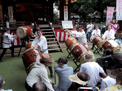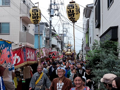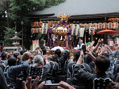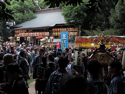 日曜日の午後、町神輿が境内に宮入して勢揃いする(全町会とは限らない)。