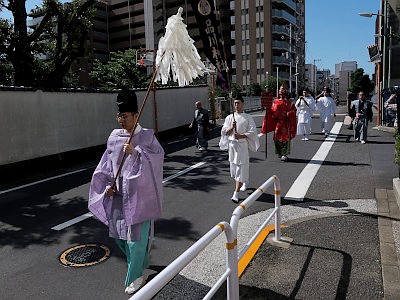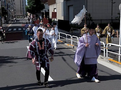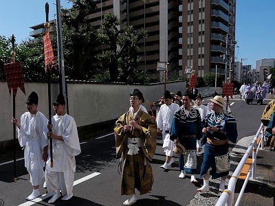 神輿行列は北品川方面から旧東海道を下り、品川神社に宮入りする。