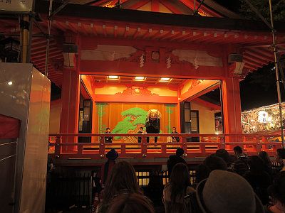 神楽殿ではお囃子や獅子舞などが奉納される。ただし演目や時間などは現地でも告知されていなかった。また宝物殿では宮神輿と雷電稲荷神輿も公開される。