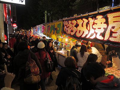 歌舞伎町方面から靖国通り沿いにも露店が出る。