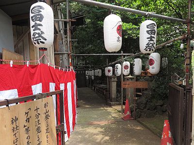 当社の富士塚は7月の海の日とその前日に、富士祭と称して山開きされる。