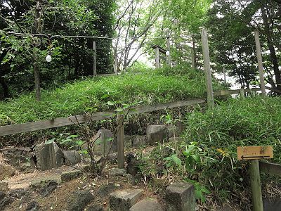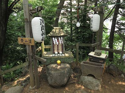 富士塚の麓には浅間神社の里宮があり、頂上には奥宮の石祠がある。また五合目には小御岳神社の石祠がある。