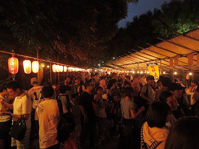 社殿前では盆踊りが行われる。