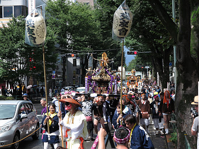 当社の例大祭においては毎年日曜日、合同神輿パレードと銘打って町神輿の連合渡御が行われる。