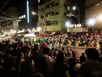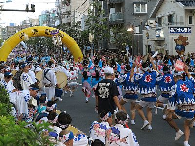百数十もの連(阿波踊り団体)が参加して、百万人近い見物客の人出があり、東京の夏の三大祭りの一つを名乗っている。