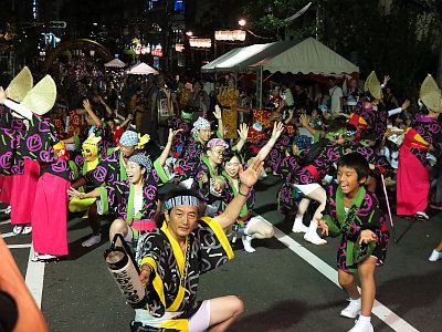 現在、東京近郊各地で盛んに行われている阿波踊り大会の草分け的存在で、かつ最も有名。