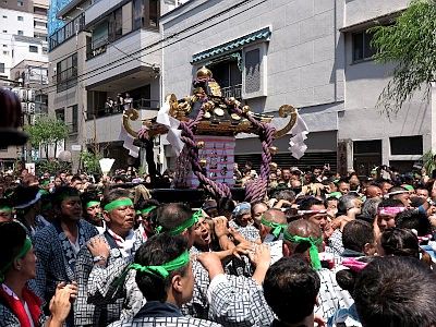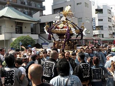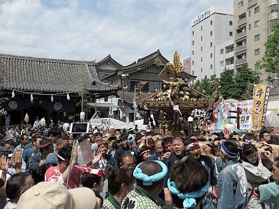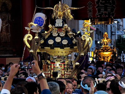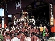 浅草寺・浅草神社の東側にある三ヶ町の連合渡御。伝法院通りから仲見世を経て浅草寺本堂、次いで浅草神社に赴く。