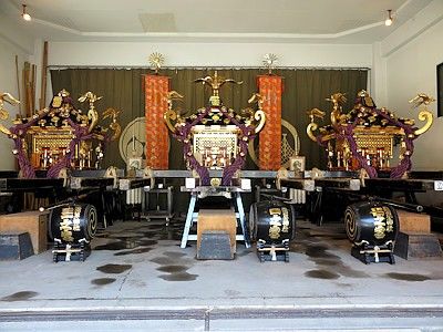 宮神輿は全て台輪幅3尺7寸で、3基のうち2基は頂に鳳凰ではなく擬宝珠を載せる。擬宝珠を戴いた神輿自体は若干珍しいという程度だが、町神輿にも宮神輿に倣って擬宝珠を頂いているものが少なからずあり、擬宝珠を頂いた神輿が多数集まっているのは珍しい。