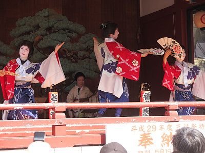 びんざさら舞とは、三社祭および本尊示現会で奉納される田楽の一種。東京都指定無形民俗文化財。