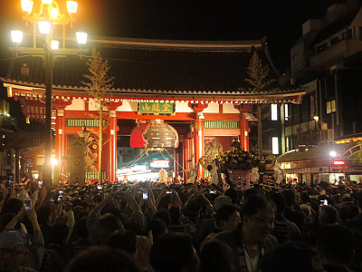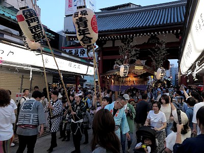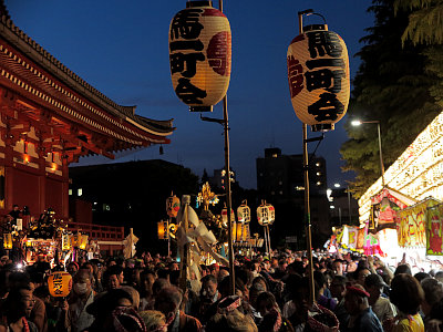 雷門周辺の四ヶ町の連合渡御。雷門から仲見世を通って浅草寺本堂前へ行き、また仲見世を通って雷門を出る。