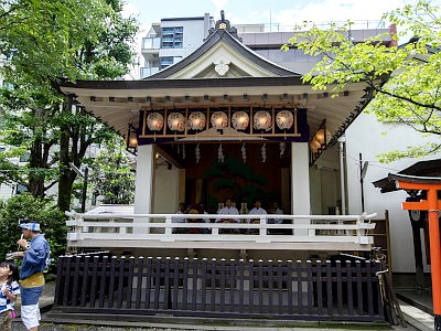 第六天榊神社の例大祭は6月初旬の週末に執り行われる。