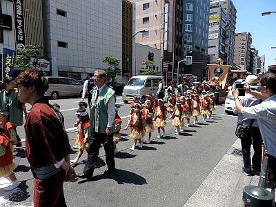 浅草寺創建に関わった漁師である檜前浜成・竹成の衣装をまとった宝童子(幼稚園児)たちが、七福神をモチーフにした宝船を曳いて浅草寺近辺を練り歩く。
