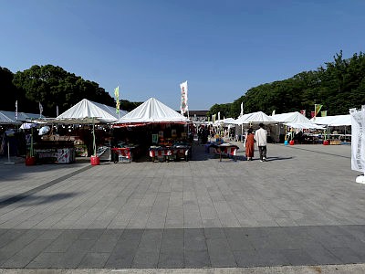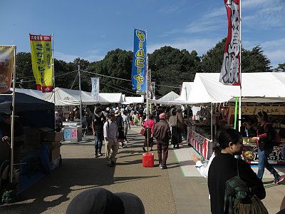 上野公園内の会場には、様々な物を売る仮設店舗が立つ。