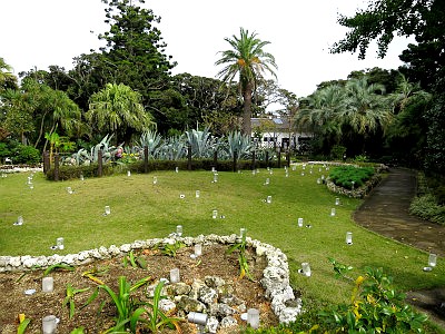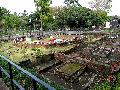 江島神社・江の島岩屋の参道沿いにある。花壇は明治20年代の旧コッキング邸温室のレンガ基礎を利用したもの。