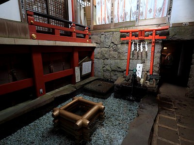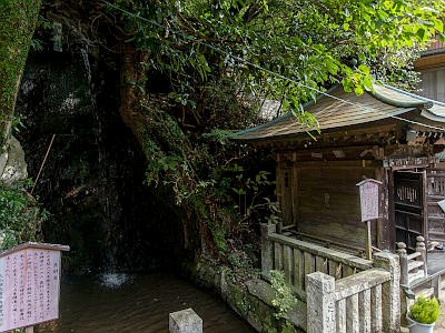 神水(大山名水)は飲用可。拝殿と参集殿の間の地下巡拝道に入るとある。