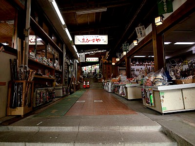 こま参道は、バス終点とケーブルカー乗場との間にある土産物店街。