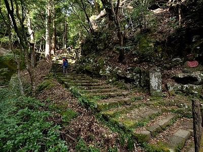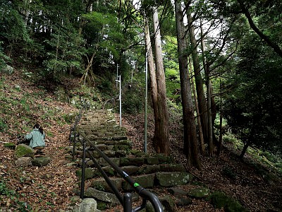 上社から「見晴台」へ降りるのは50分。「見晴台」から二重滝を経由して下社へ戻るのは25分、戻らずにそのまま日向方面へ向かい浄発願寺奥ノ院に至るまでは50分。