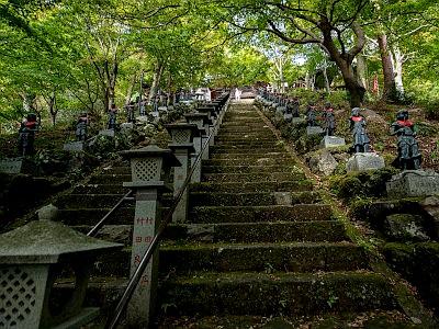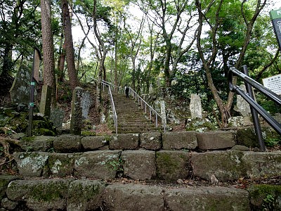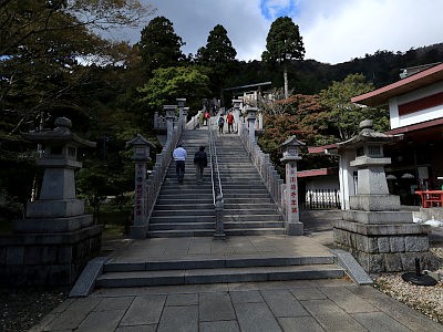 ケーブルカー駅からの参道とも合流し石段を登る。