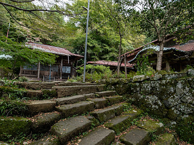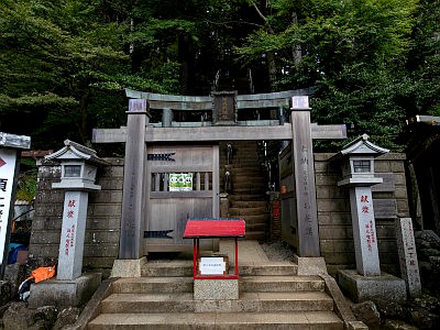 ケーブルカーには乗らず登山道を進むと、男坂と女坂の分岐点となる追分社がある。両坂は阿夫利神社下社の前で再合流するが、男坂の方は大山寺は通らない。