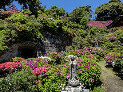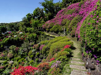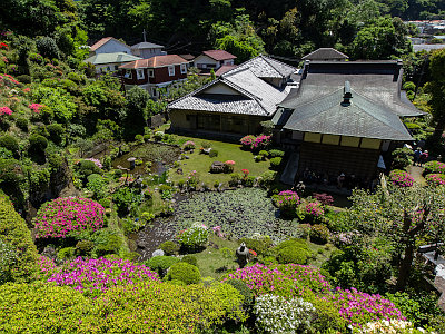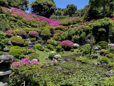 本堂裏の回遊式庭園はツツジが多く植栽されており、有料公開される。
