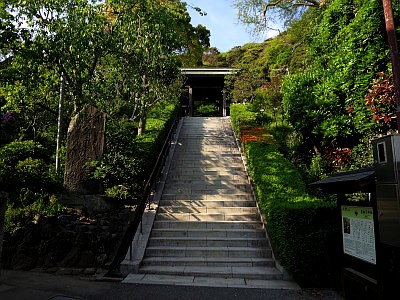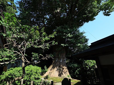 神木のイチョウは創建時に植えたものと伝える。鎌倉市指定天然記念物。
