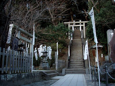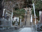 左が社殿への鳥居、正面が墓所(法華堂跡)への鳥居。