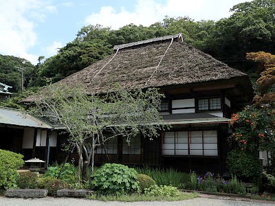 総門は1468年修造と伝わる。鎌倉では数少ない室町時代の由緒を持つ建築物だが、柱等に古材が残るだけである。