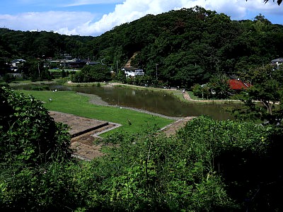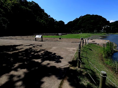 中ノ島は、池の南端で広がっていた池の中央にあった。現在は周囲の池は埋め立てられている。
