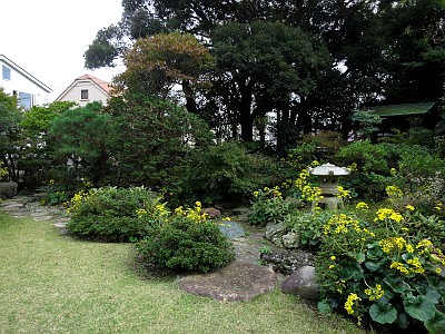 邸宅は近代数寄屋建築の第一人者である吉田五十八の設計で昭和37年に竣工したもので、国の文化財に登録されている。また庭園も良く整えられている。