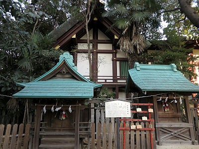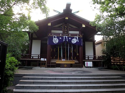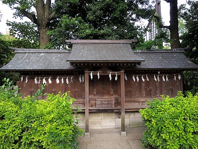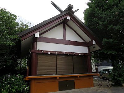 社殿は戦災焼失し、昭和38年にRC造で再建。拝殿・幣殿・本殿を連結した権現造。