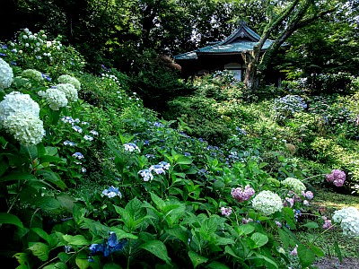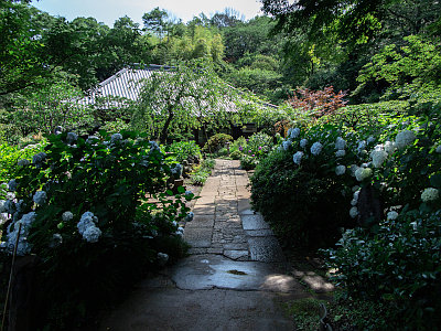 浄慶寺の境内にはアジサイが多く植えられており、6月頃に見頃となる。