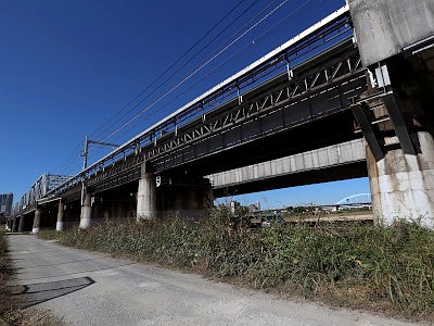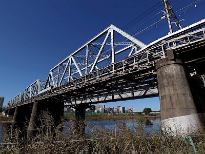 JR横須賀線(品鶴線)の多摩川橋梁は昭和4年竣工。多摩川を跨いで、川崎市と東京都大田区を結ぶ。