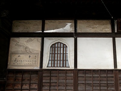本殿覆屋も1853年建立。仏堂のように火灯窓がある。