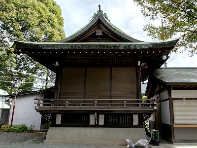 天正18年(1590年)の多摩川の洪水で少し南に遷座したが、後の洪水で再び被災して現在地へ遷座し嘉永6年(1853年)に社殿が完成した。なお、洪水は安永8年(1779年)~天明元年(1781年)頃だったとも言う。