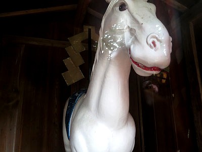 海南高家神社の左には、その祭神である磐鹿六雁命の大絵馬が立つ。