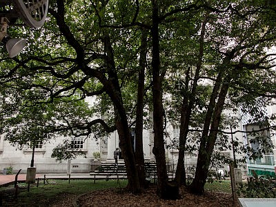 中庭の玉楠(たまくす)の木は江戸時代からあり、日米和親条約締結の地に残るタブノキとして市の史跡に指定されている。
