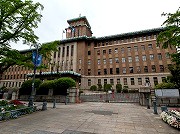 本庁舎はSRC造で昭和3年竣工。国指定重要文化財。近代的なビルに和風の屋根を載せた、和洋折衷の帝冠様式。