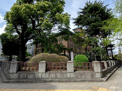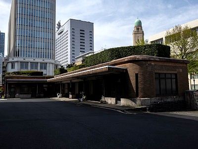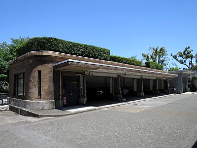外壁はRC造・石張りで昭和3年竣工(自動車庫から正門を経て南門に至る範囲)。本庁舎の重文指定に附指定。