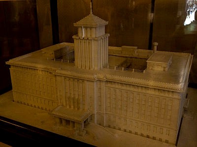 この石膏製の模型は昭和2年頃製作。本庁舎の重文指定に附指定。