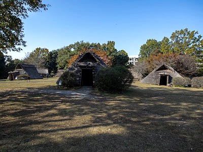85軒発見された竪穴住居跡のうち27軒が保存され、うち7軒は住居を復元。